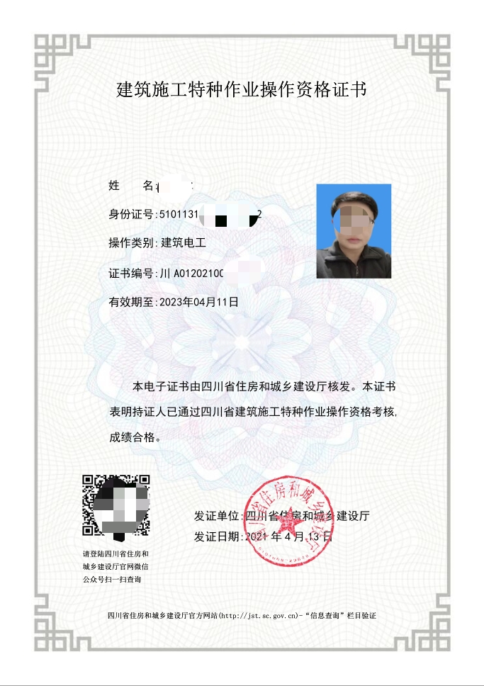 建設(shè)廳特種作業(yè)證書(shū)